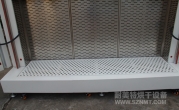 外形材質(zhì)采用2mm厚冷板折彎而成,表面高溫靜電噴塑(非普通油漆)耐腐蝕,防生銹,外形尺寸:寬2.6米,深0.85米,高1.3米,雙開門,配加強型鍍鉻方鋼門鎖,拉手,鍍鉻加強型合頁,烤箱頂箱開有6個∮250孔.